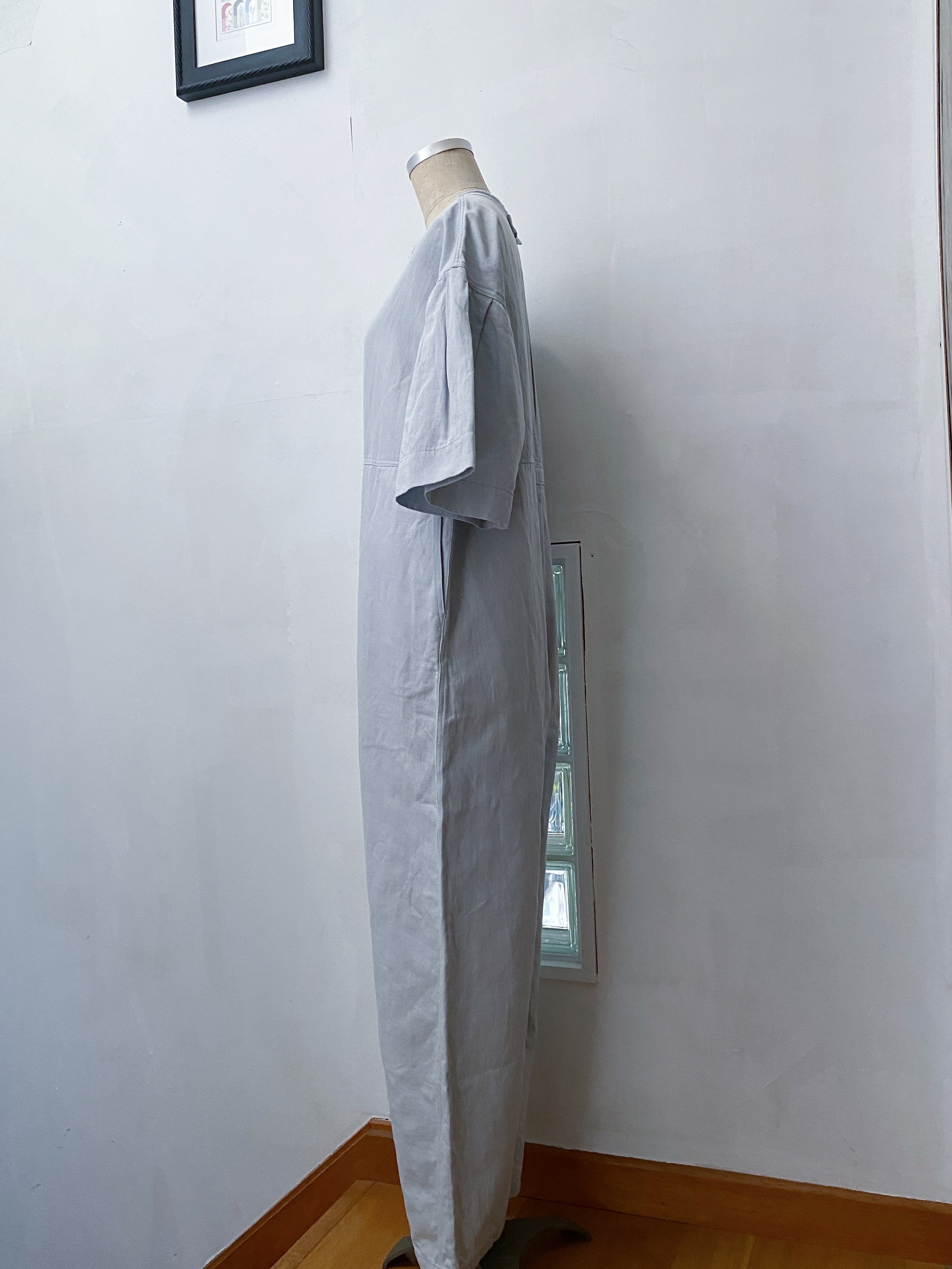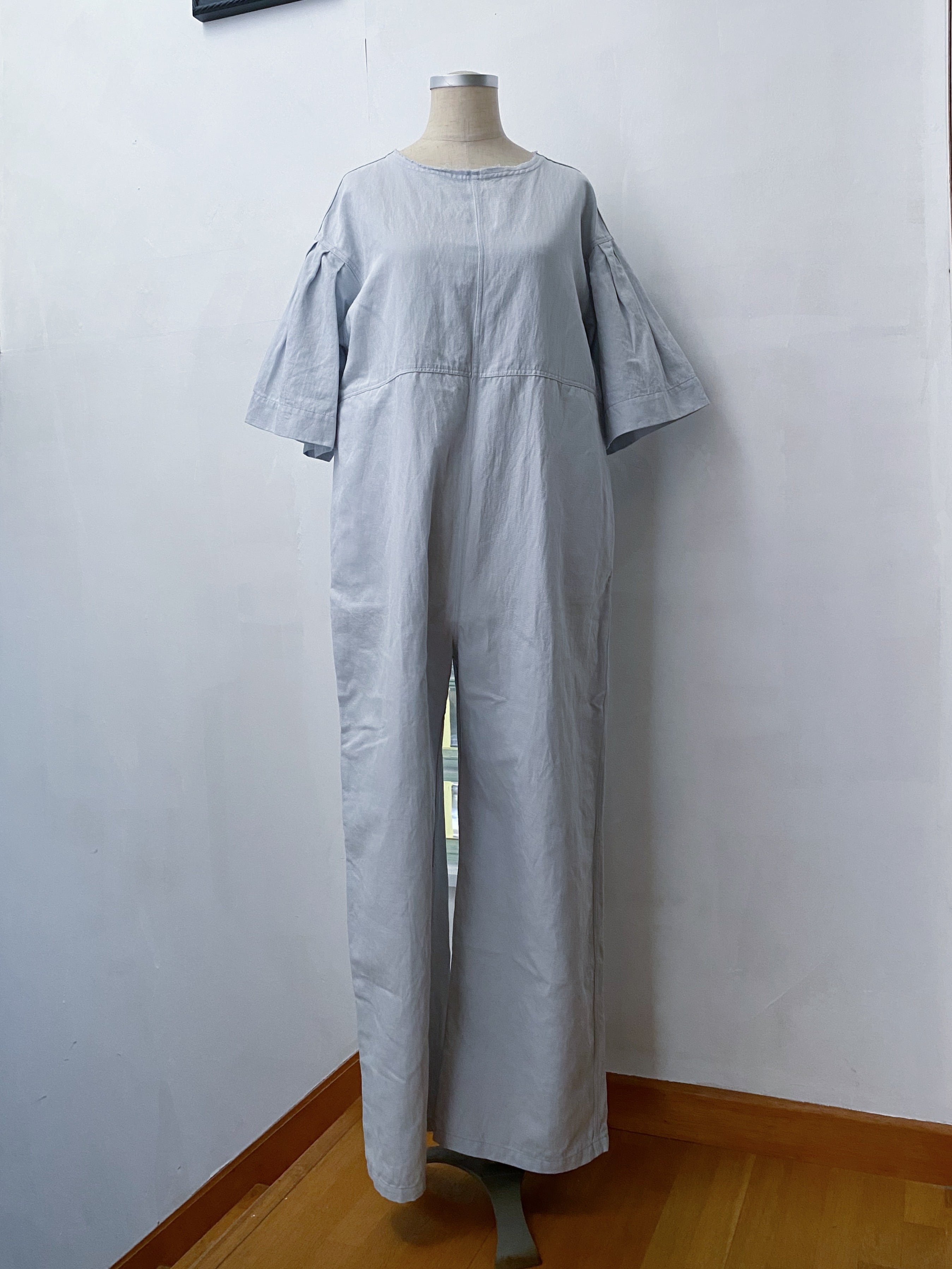 引っ掛かりが少なく、着脱もしやすい一つボタンのジャンプスーツです。