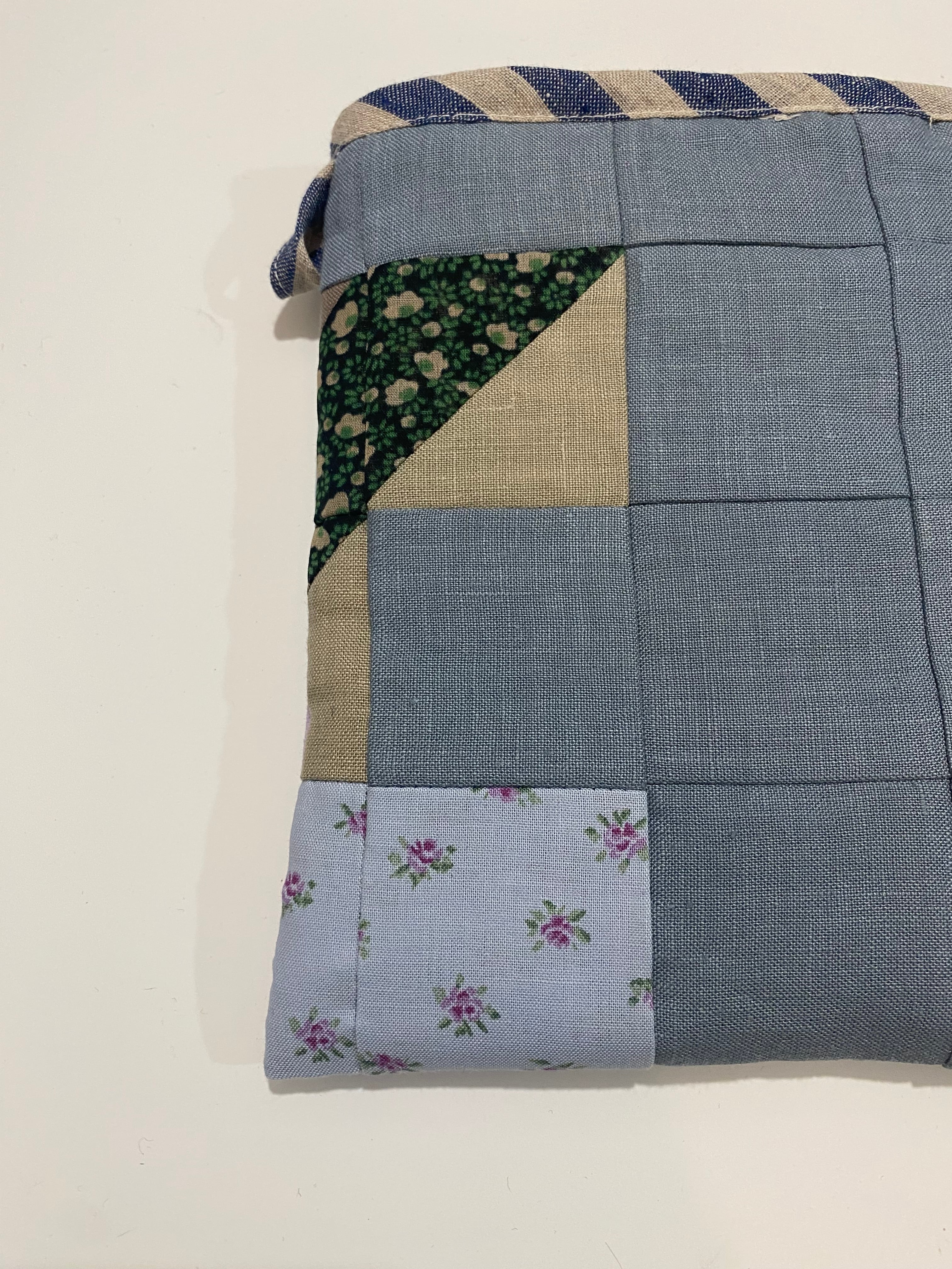 服を作る際に出てしまうハギレをできるだけ無駄なく使い切るため、一枚一枚切り出したピースを繋げ、中綿入りのパッチワークミトンに。