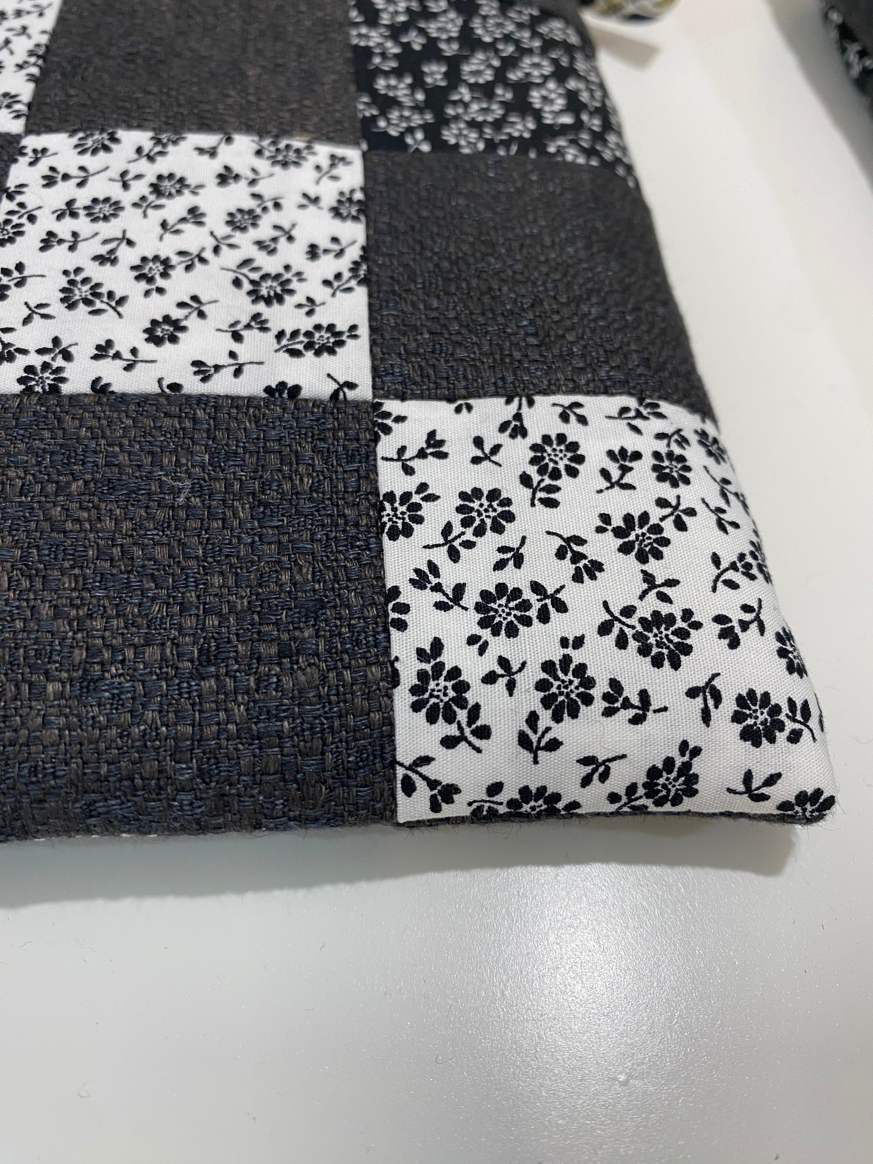 服を作る際に出てしまうハギレをできるだけ無駄なく使い切るため、一枚一枚切り出したピースを繋げ、中綿入りのパッチワークミトンに。
