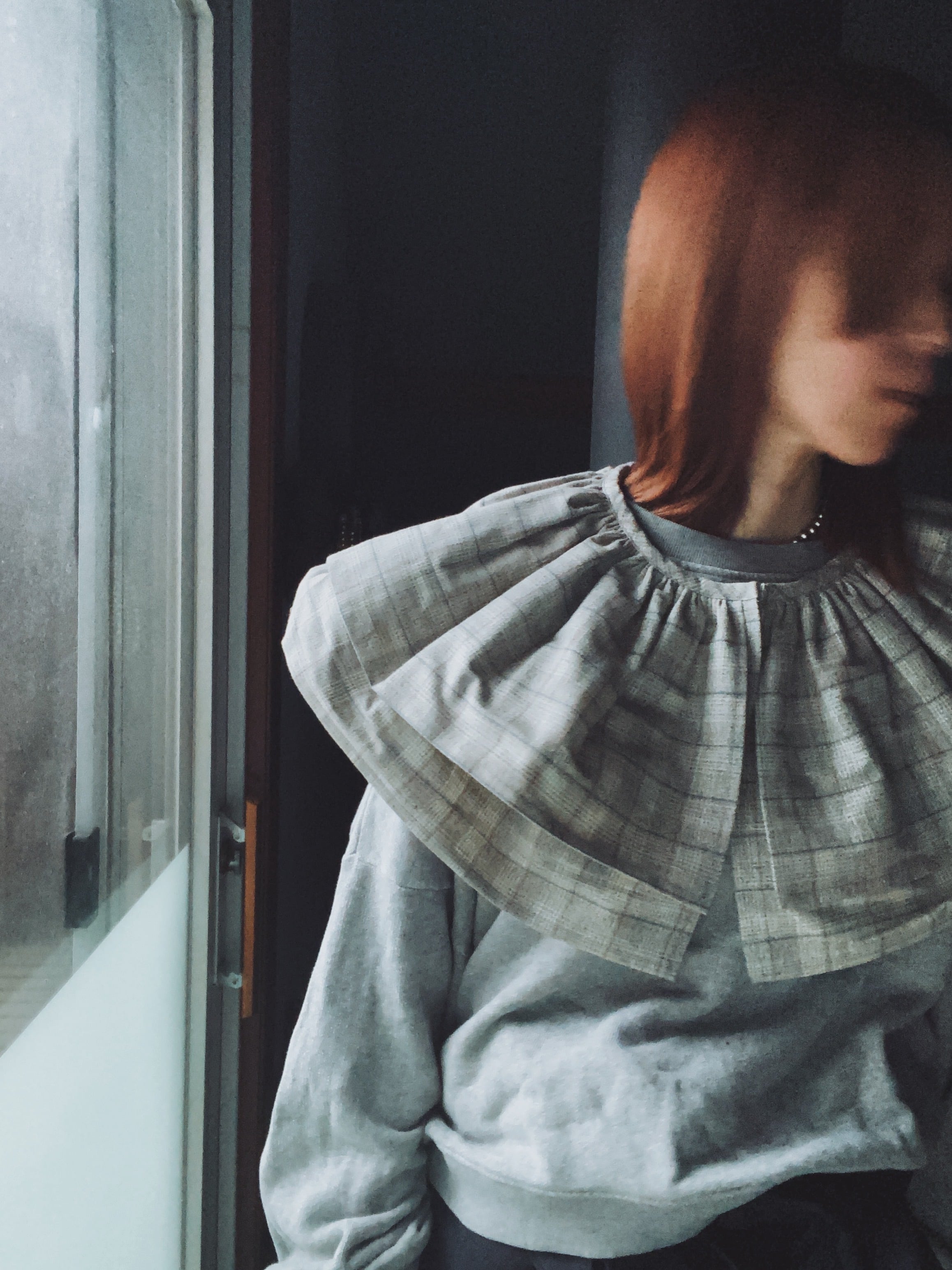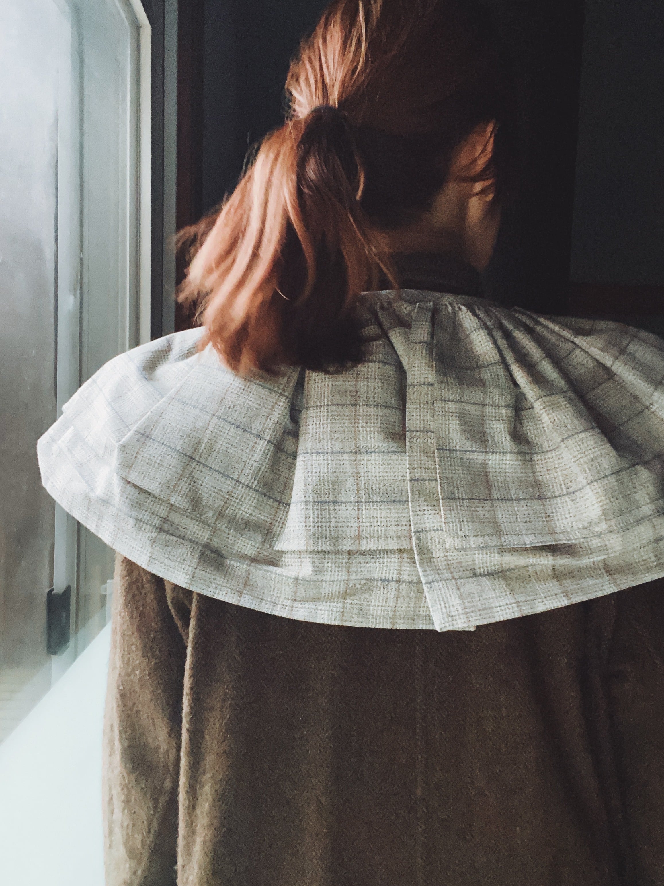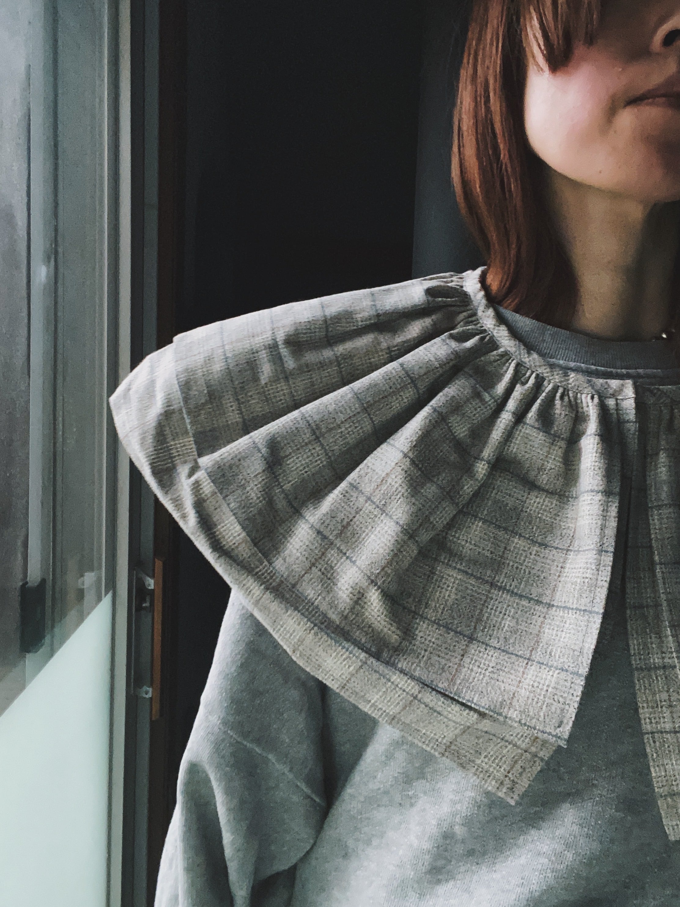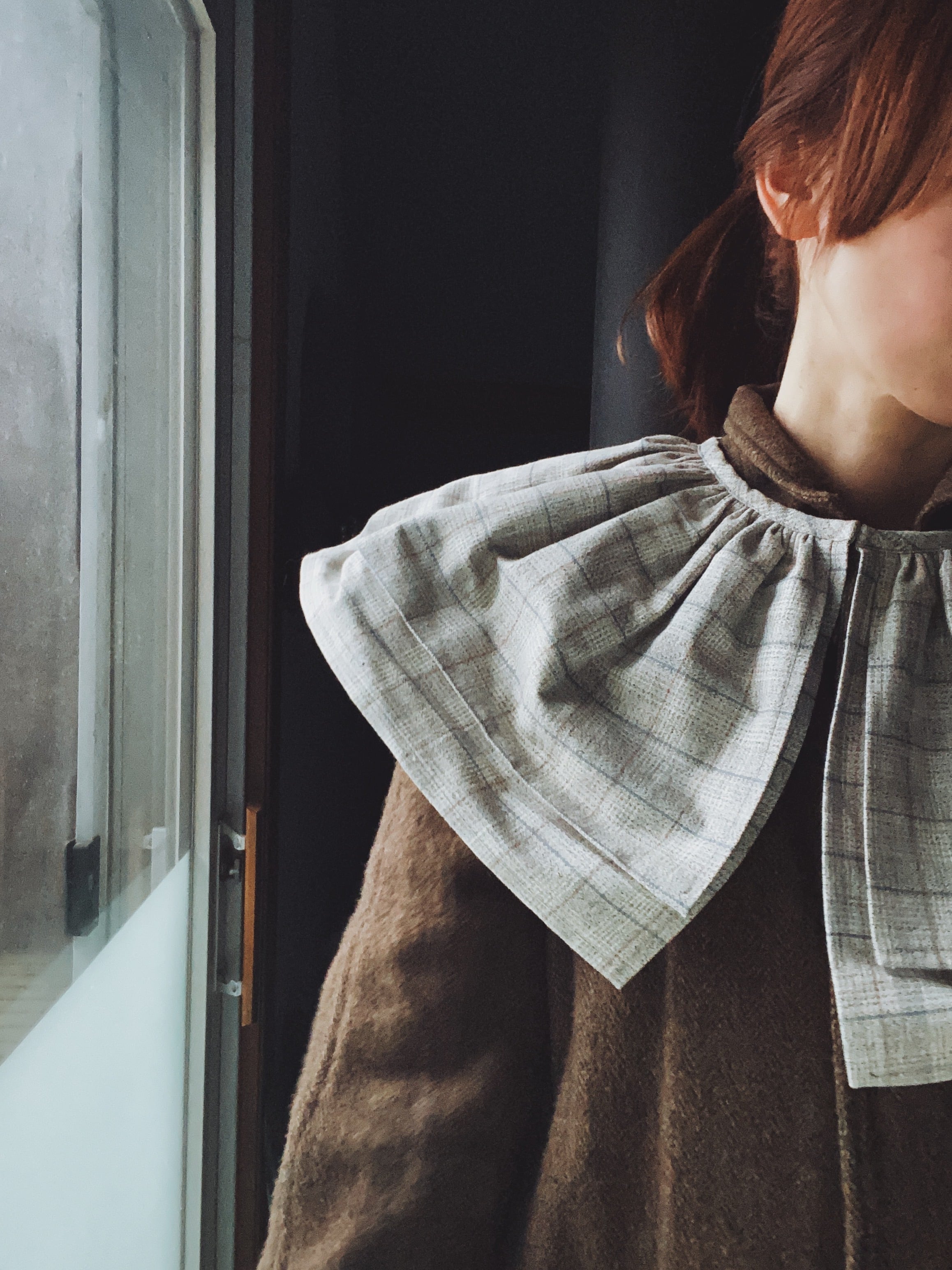 ハリのあるコットンで、肩の上に大きくのるアクセサリーです。