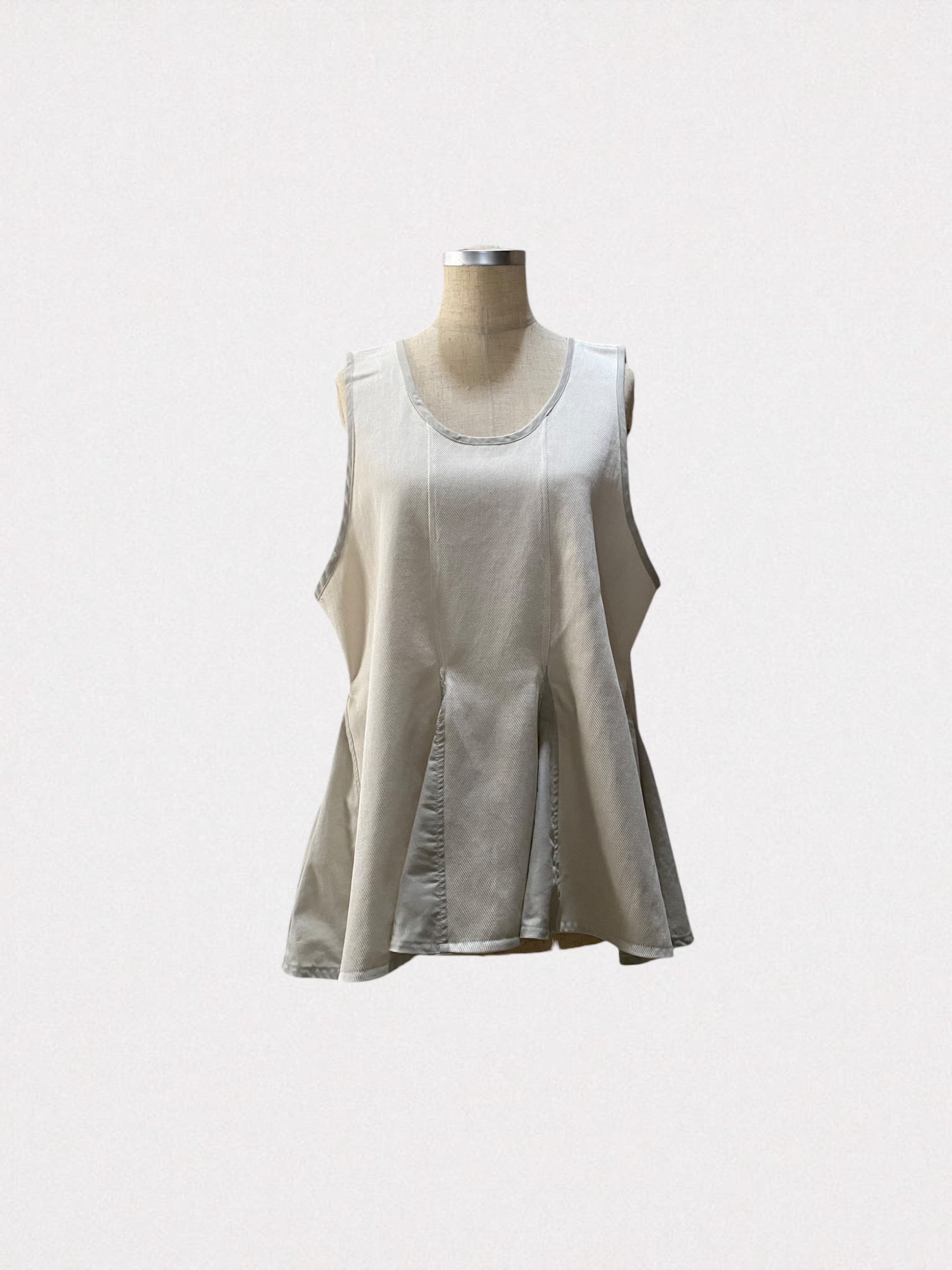 FIN TANKは、裾の生地切り替えによるフレアラインが特徴のタンクトップです。おしりが少し隠れる丈感で、リラックスした着用感。レイヤードスタイルにぴったりなデザインは、インナーとして重ね着をすることで、コーディネートにさらなる動きと変化をもたらします。