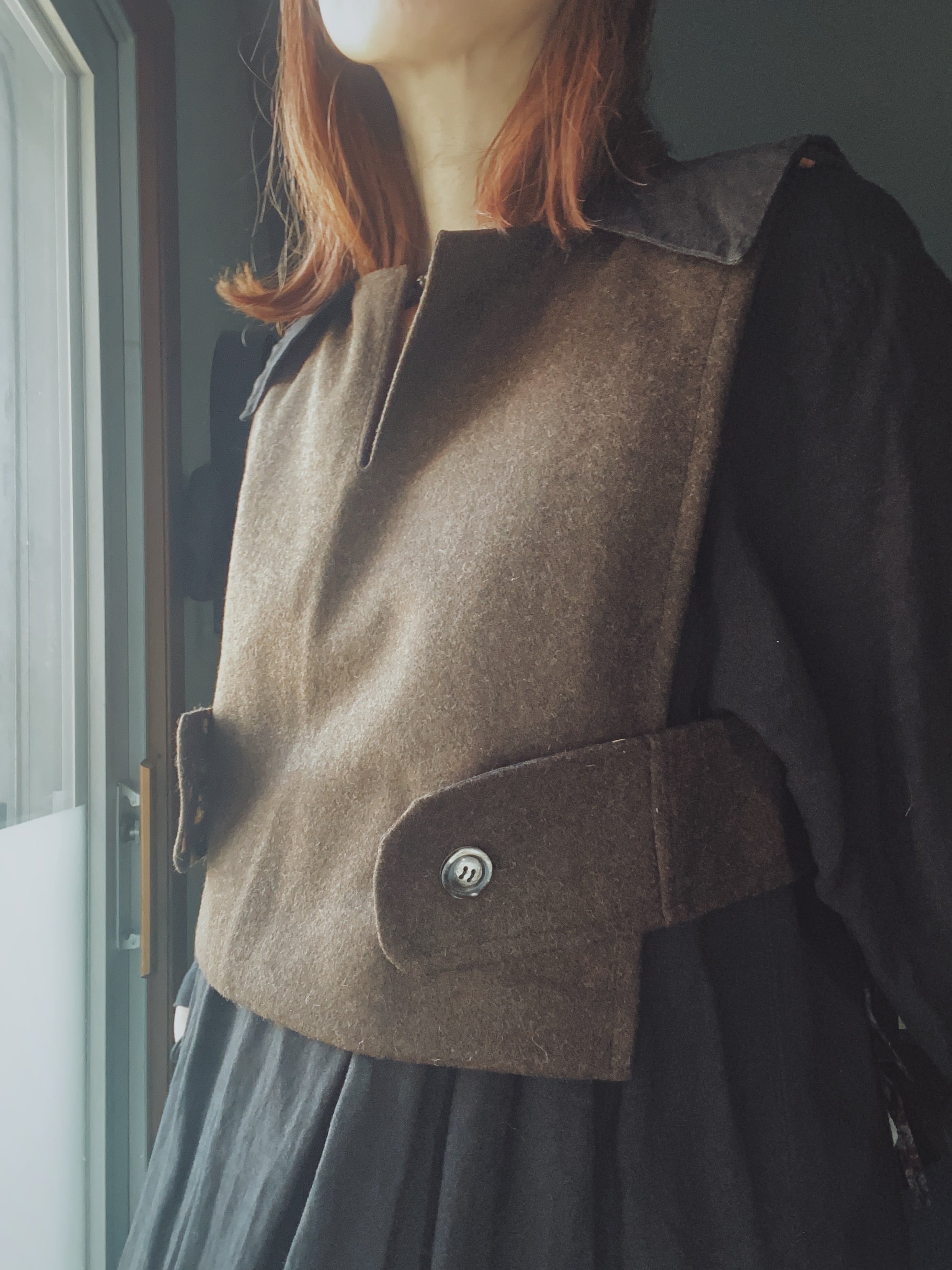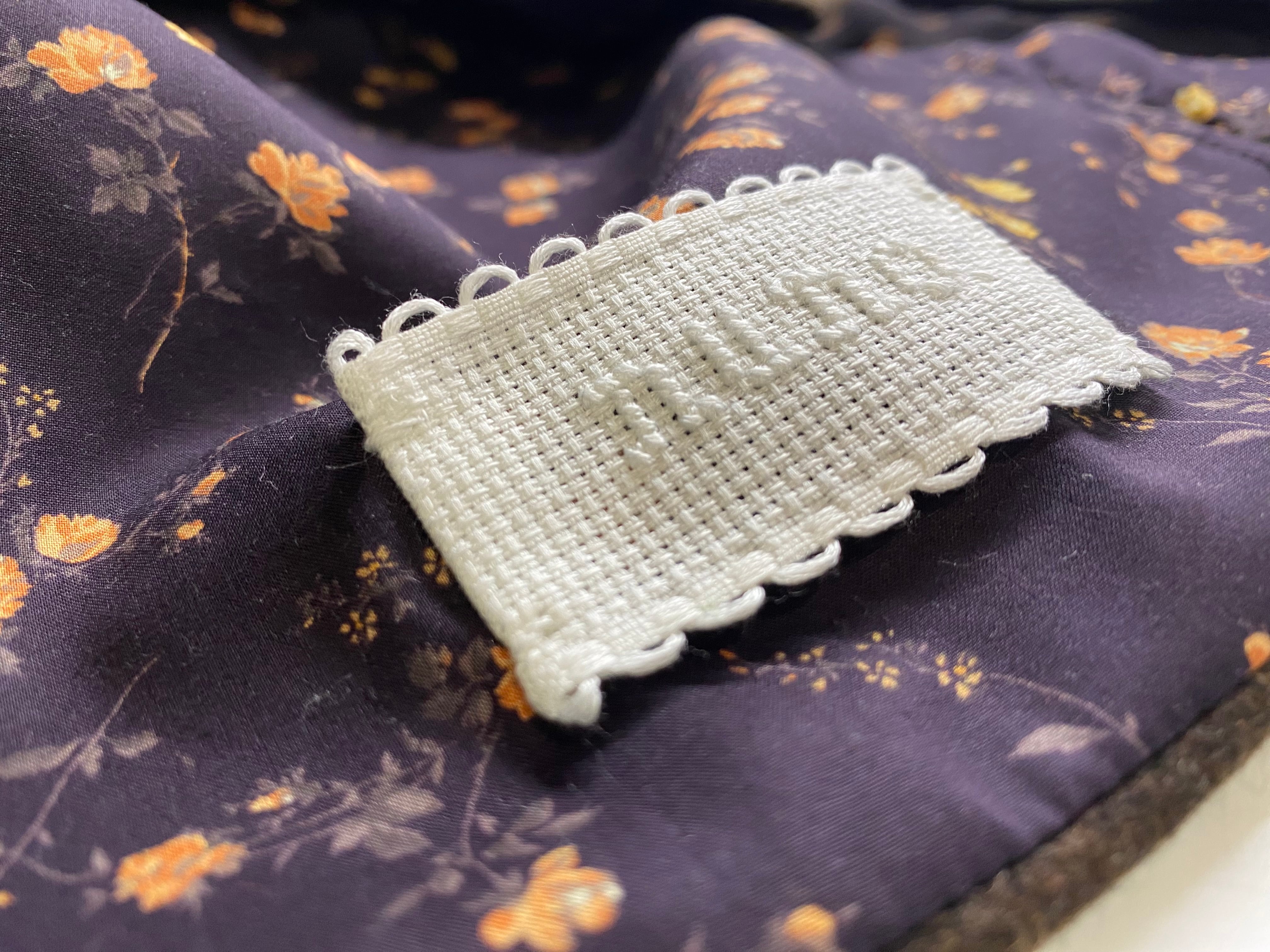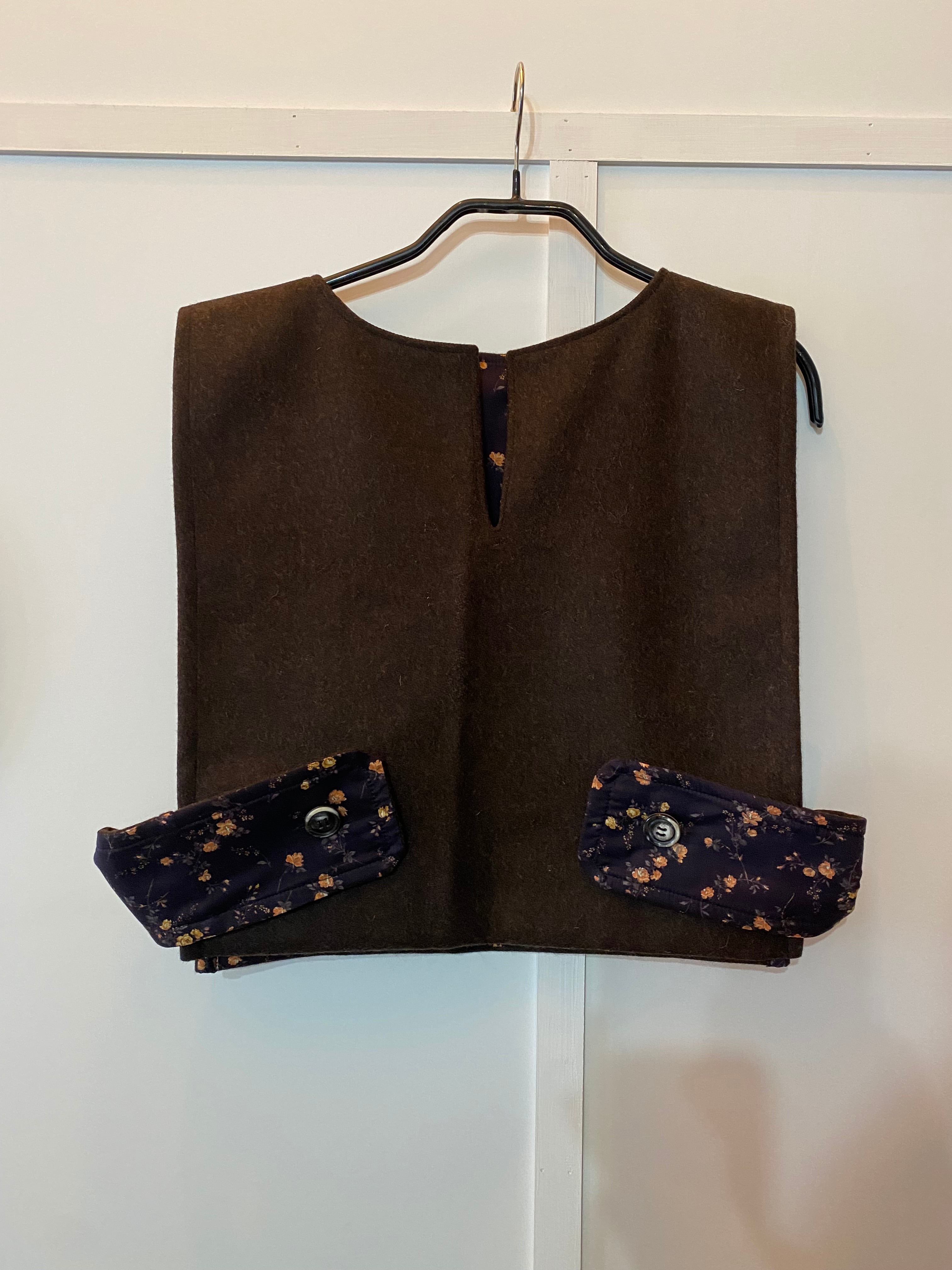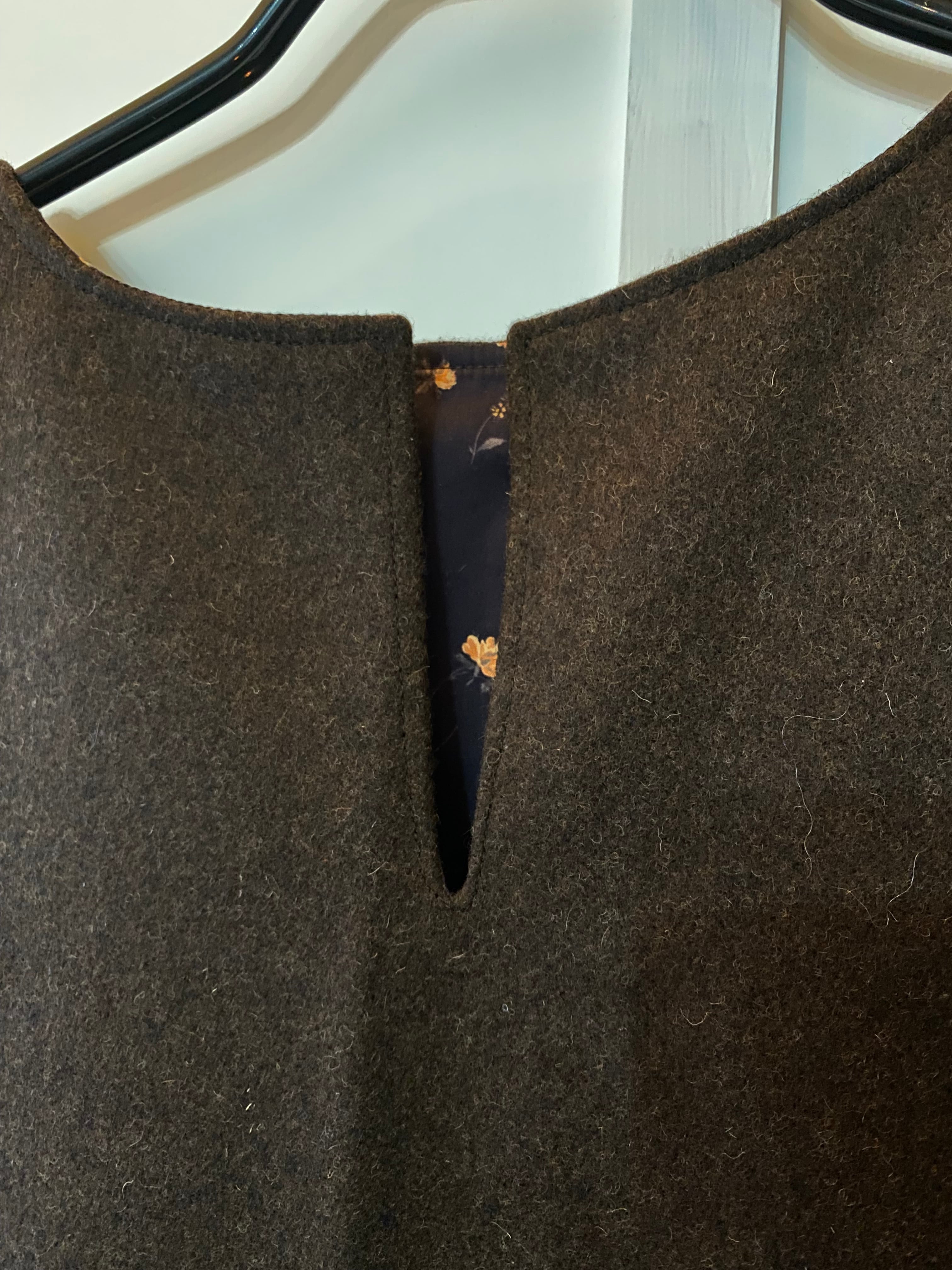表地にはカシミヤが入ったウール、裏地にはシックなリバティ。