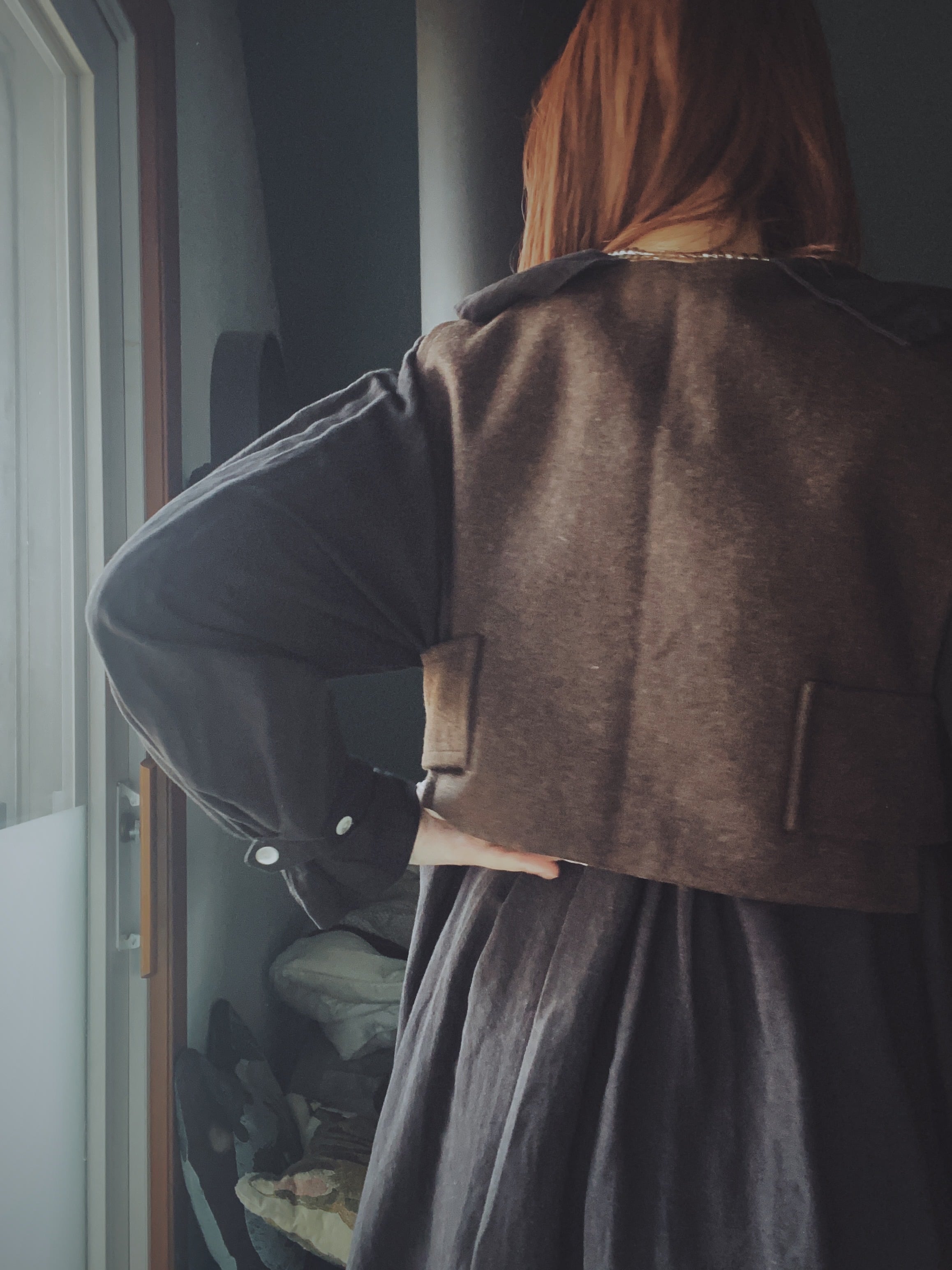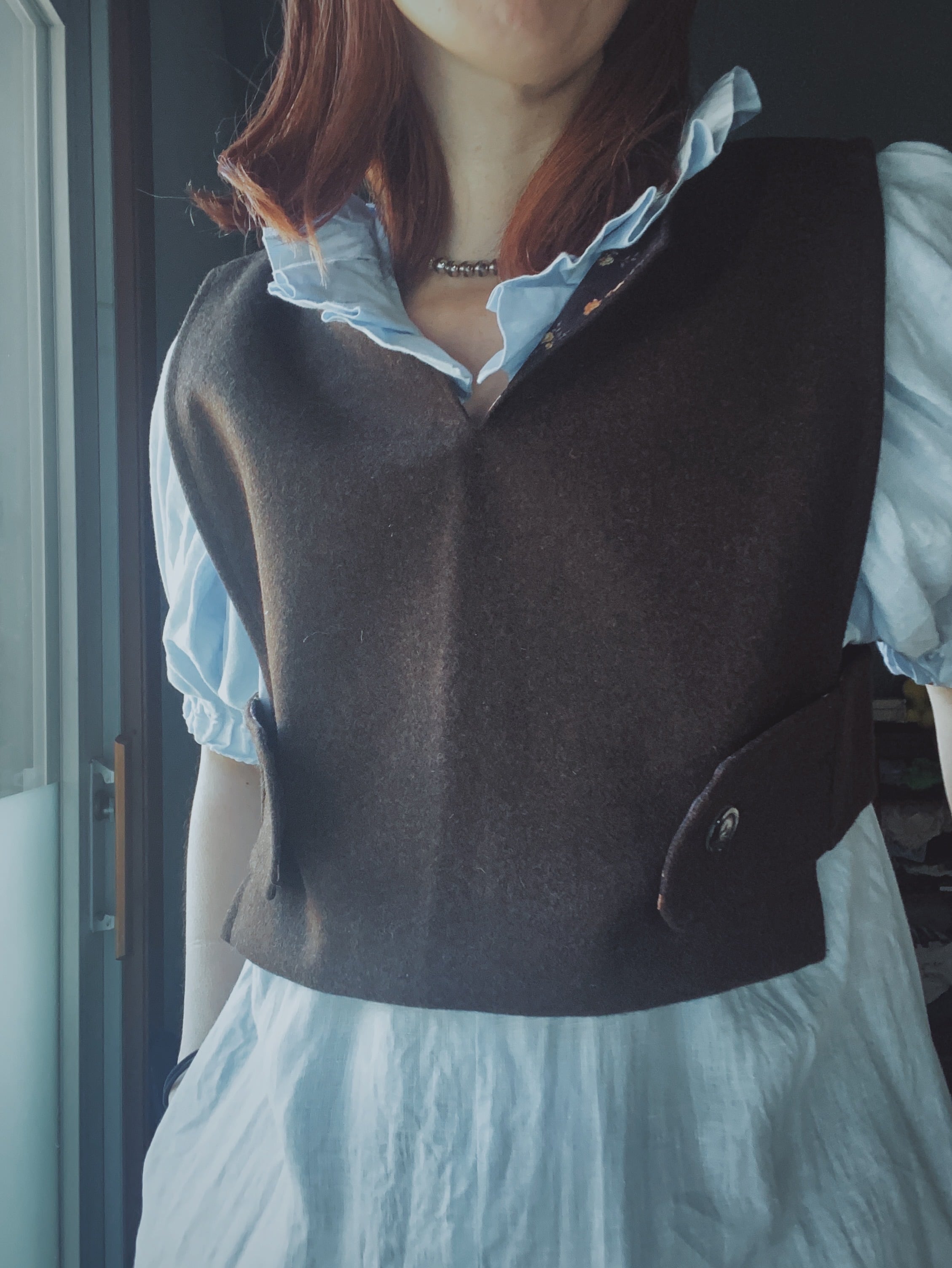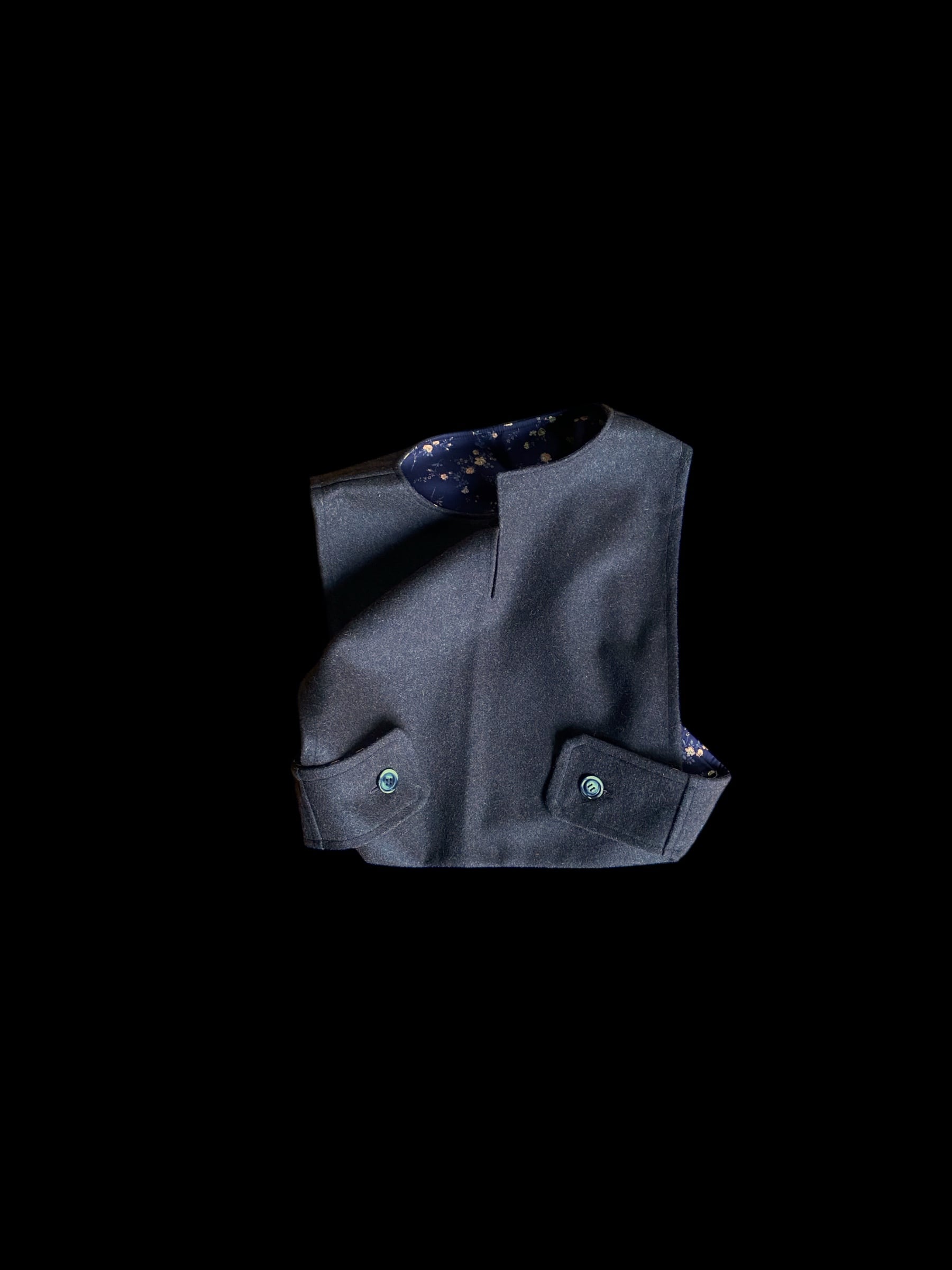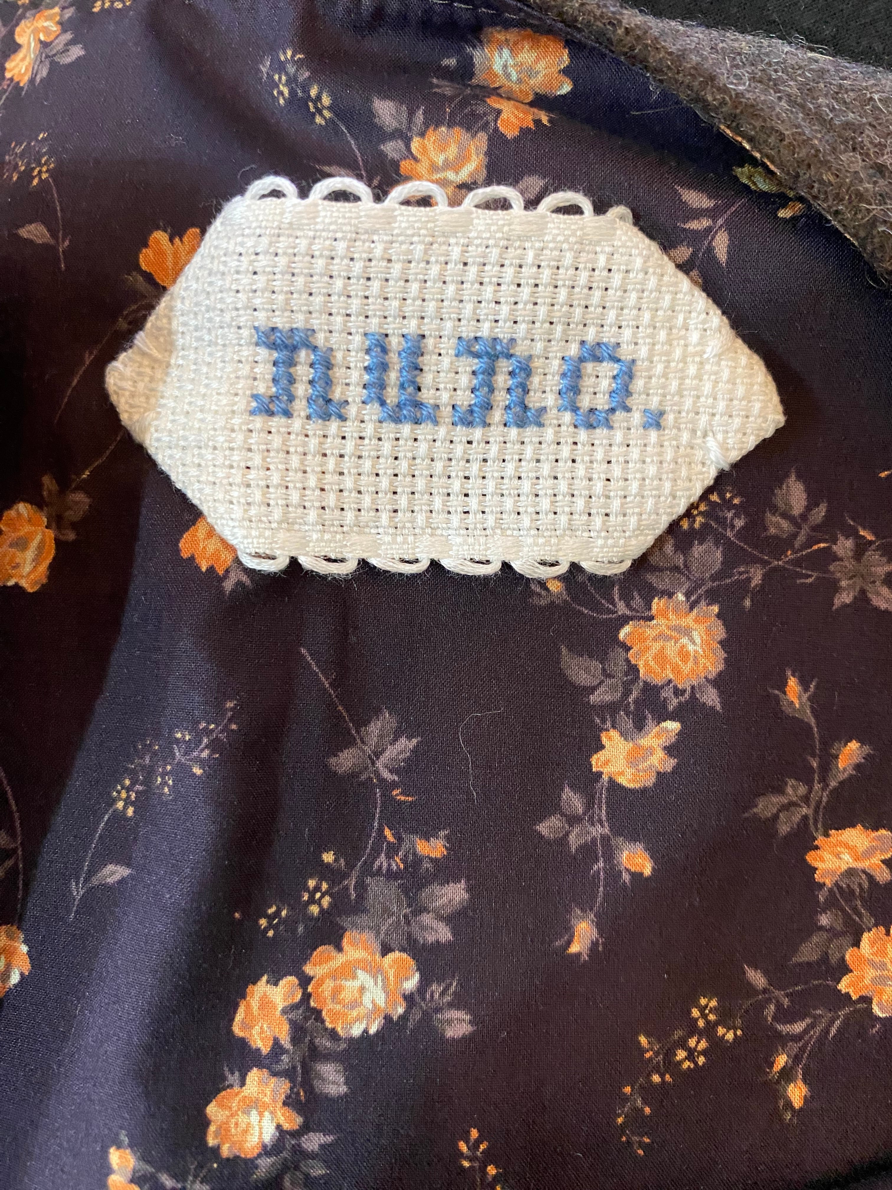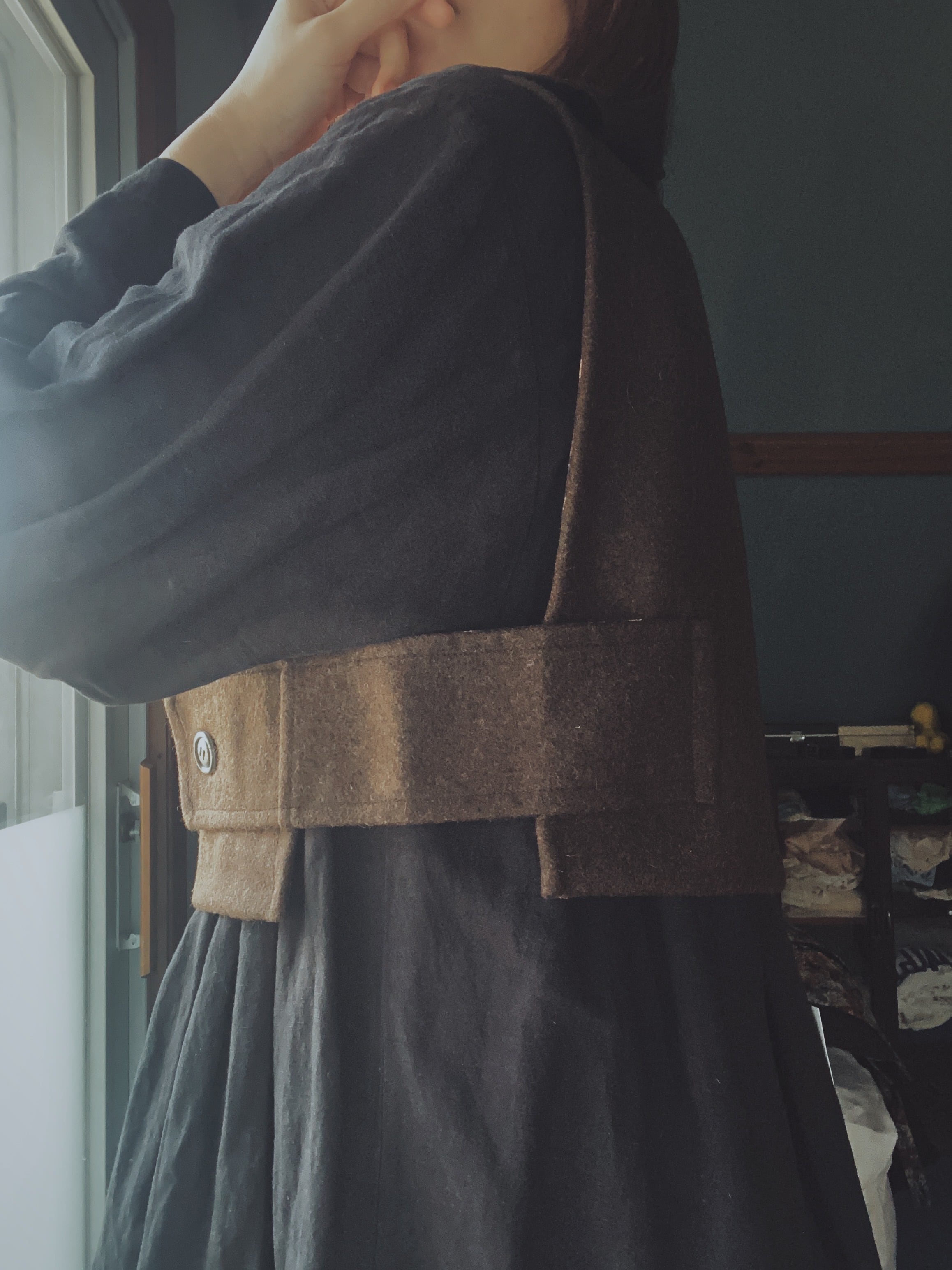 表地にはカシミヤが入ったウール、裏地にはシックなリバティ。